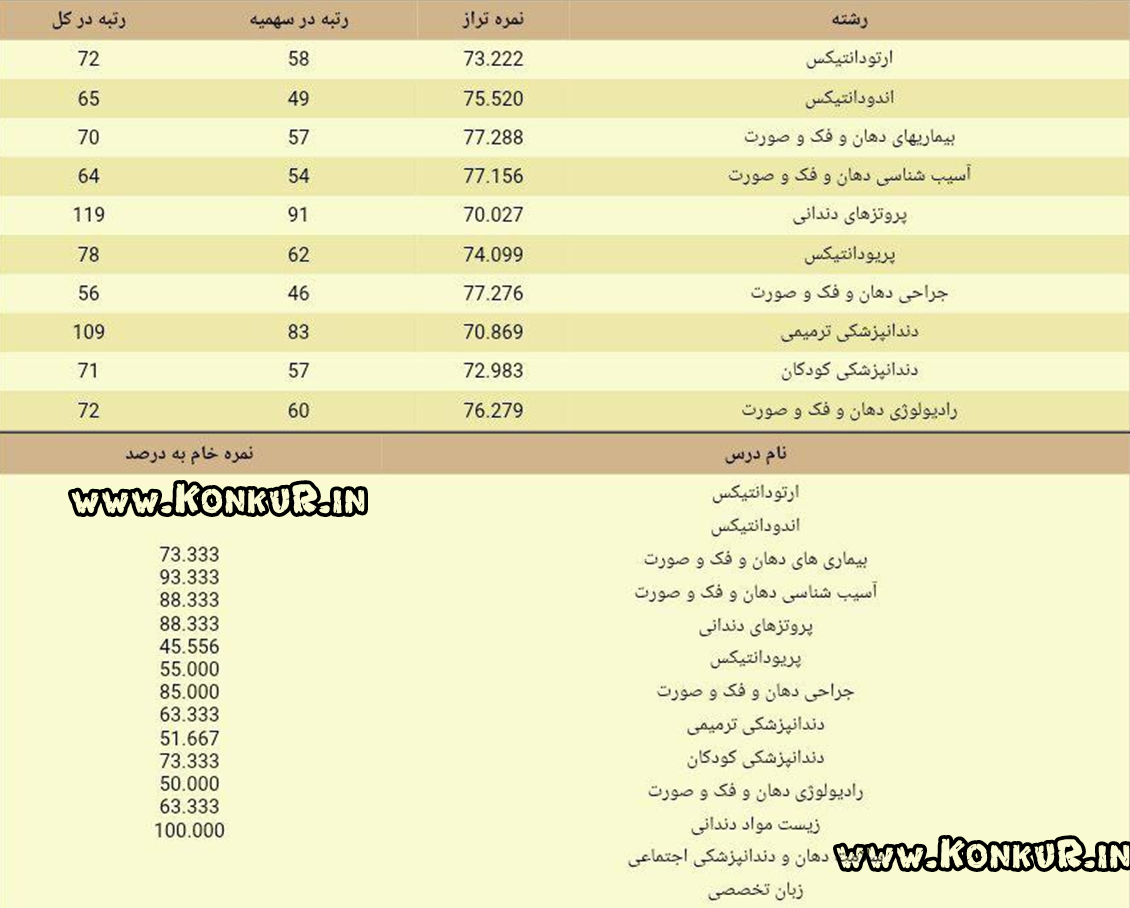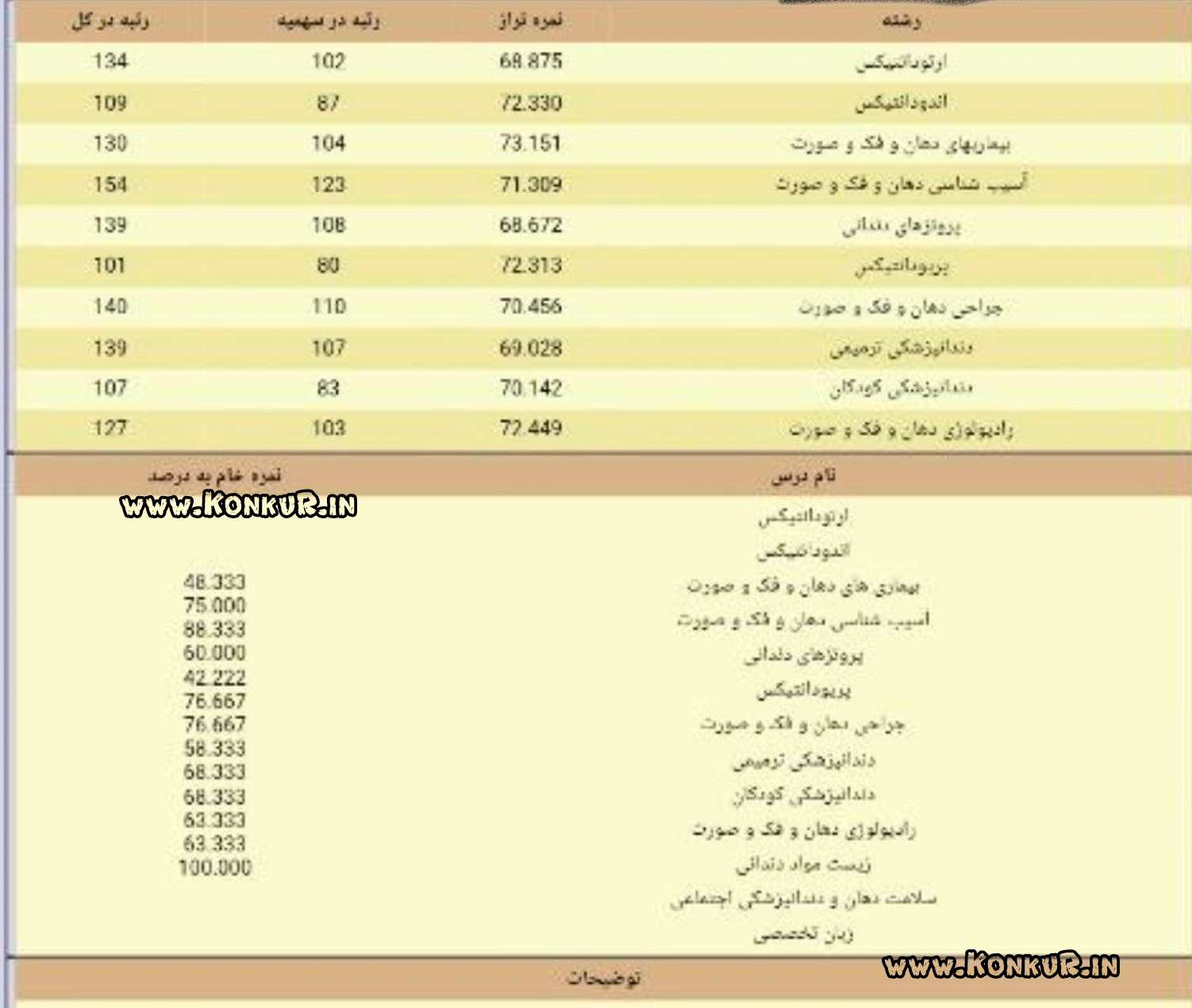 کارنامه آزمون دستیاری دندانپزشکی سال 1404 – رتبه کل 72 و نمره خام 585