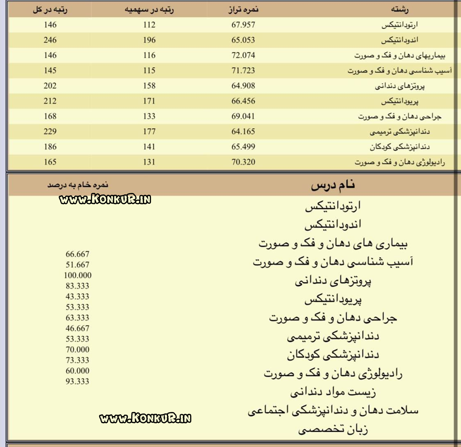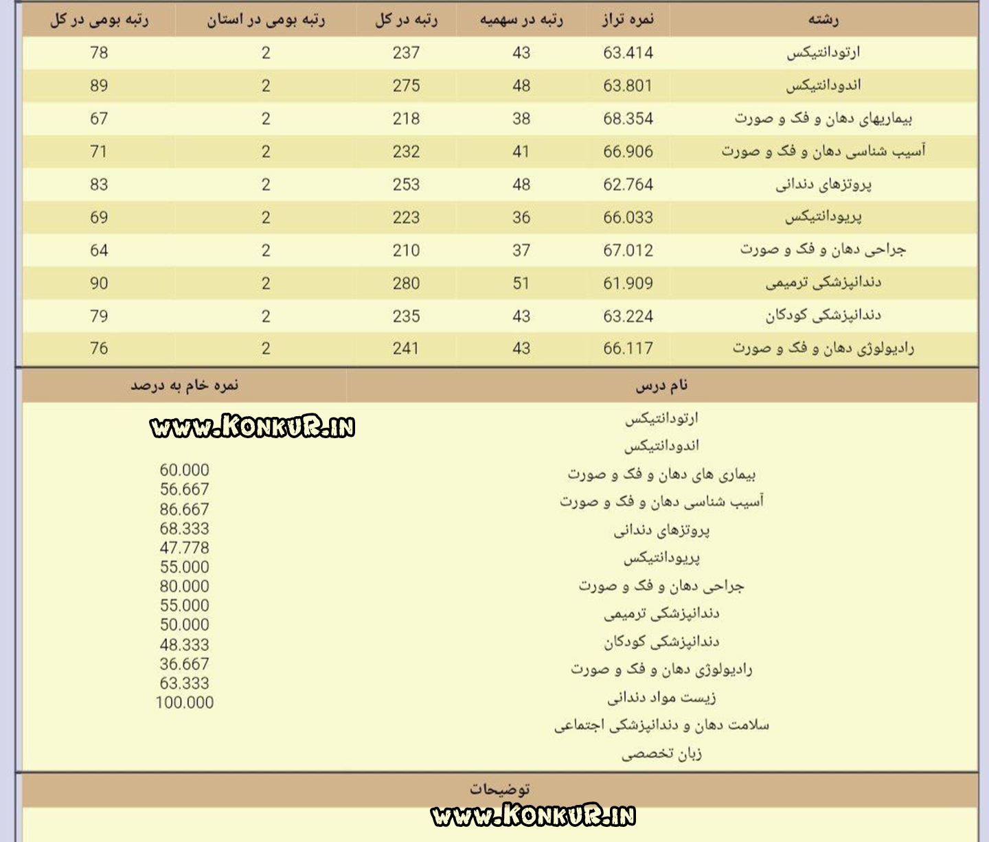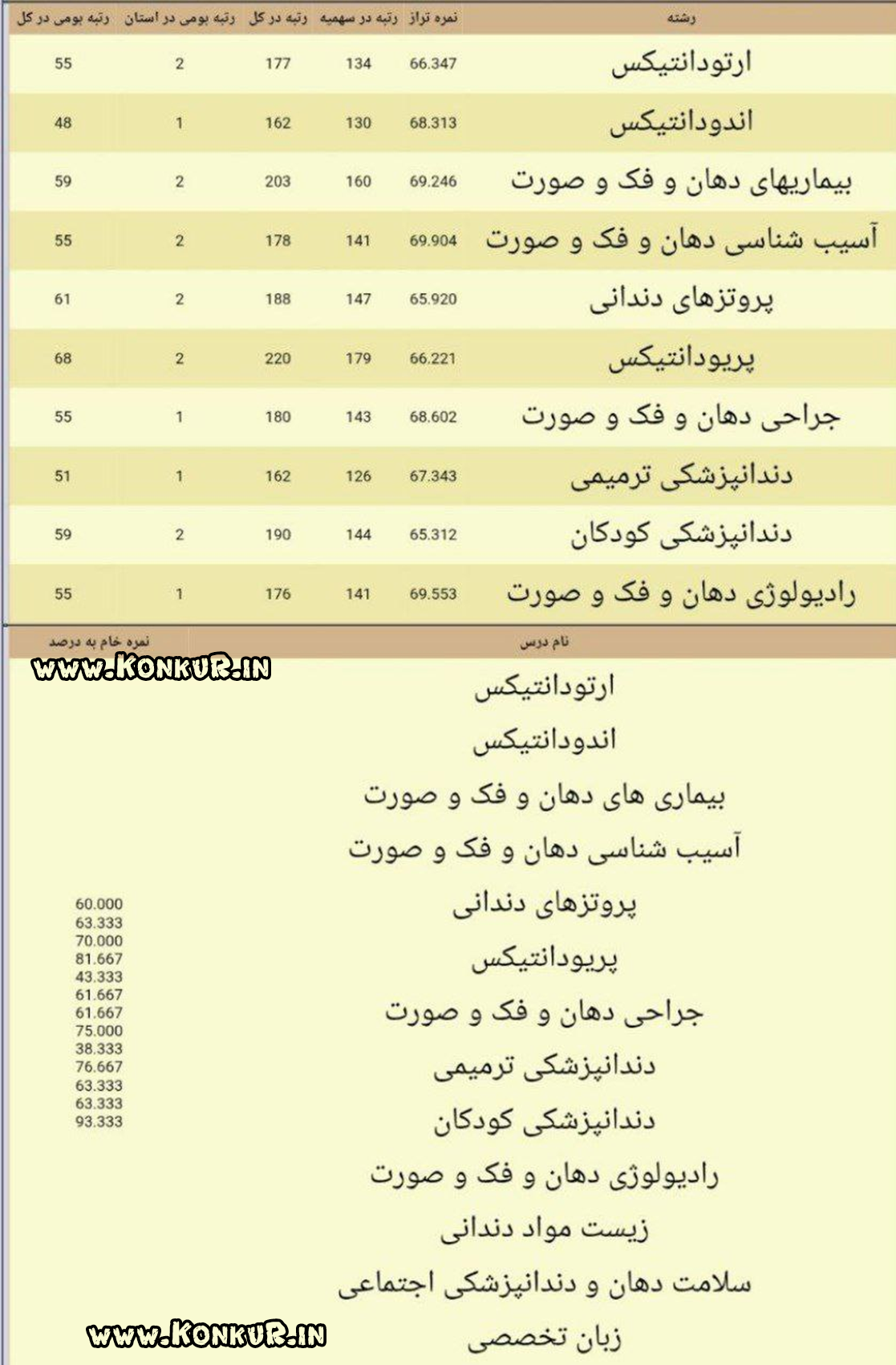 کارنامه آزمون دستیاری دندانپزشکی سال 1404 – رتبه کل 69 و نمره خام 585
