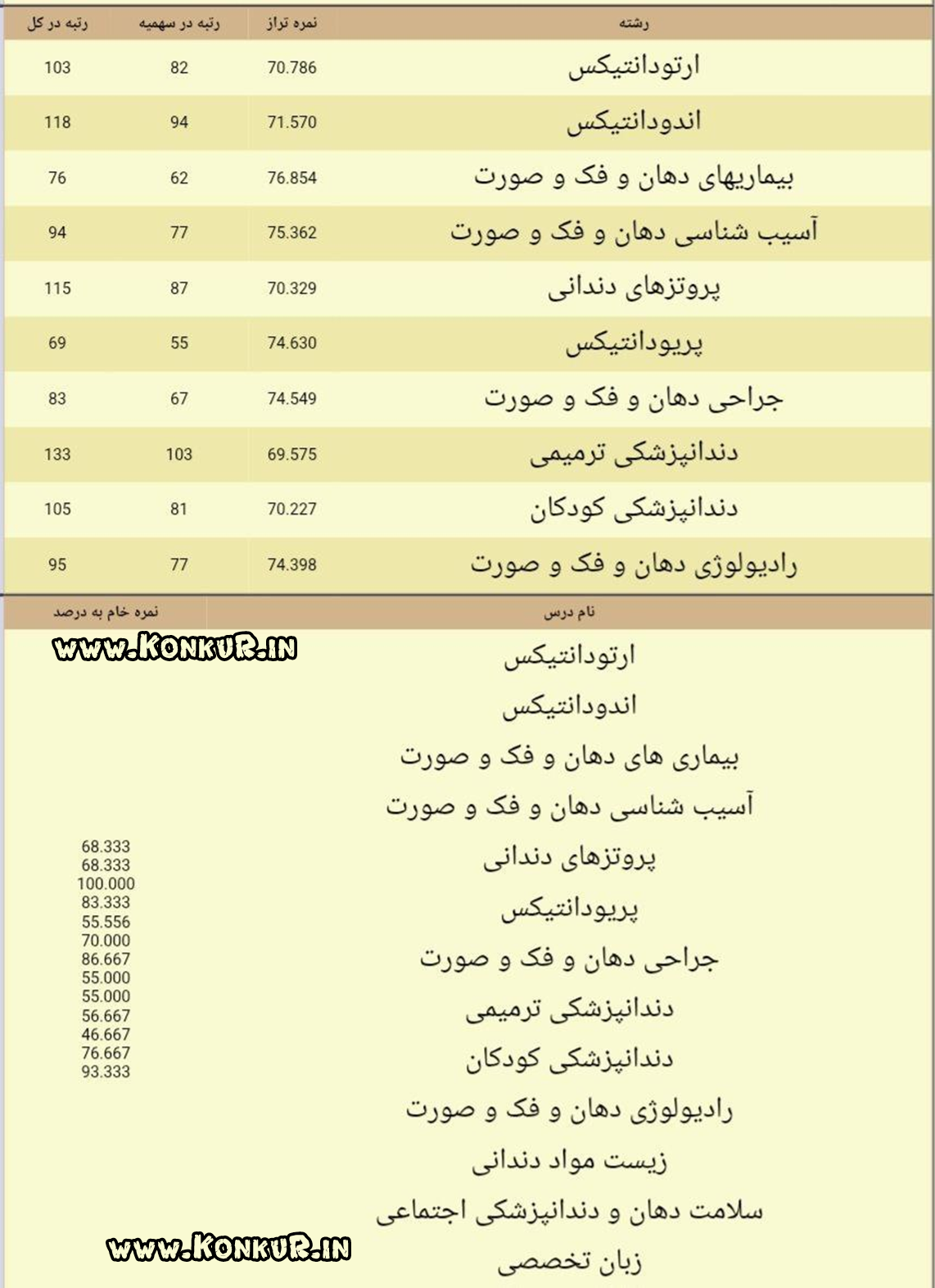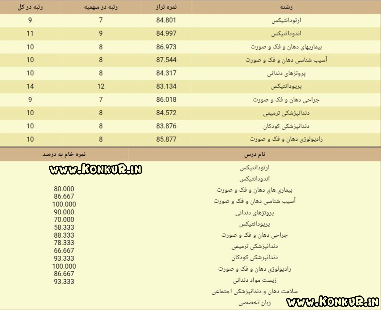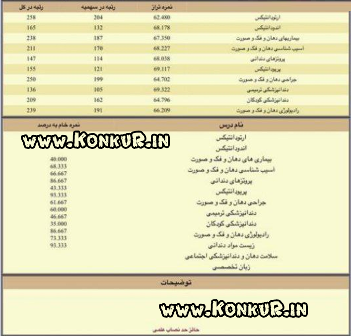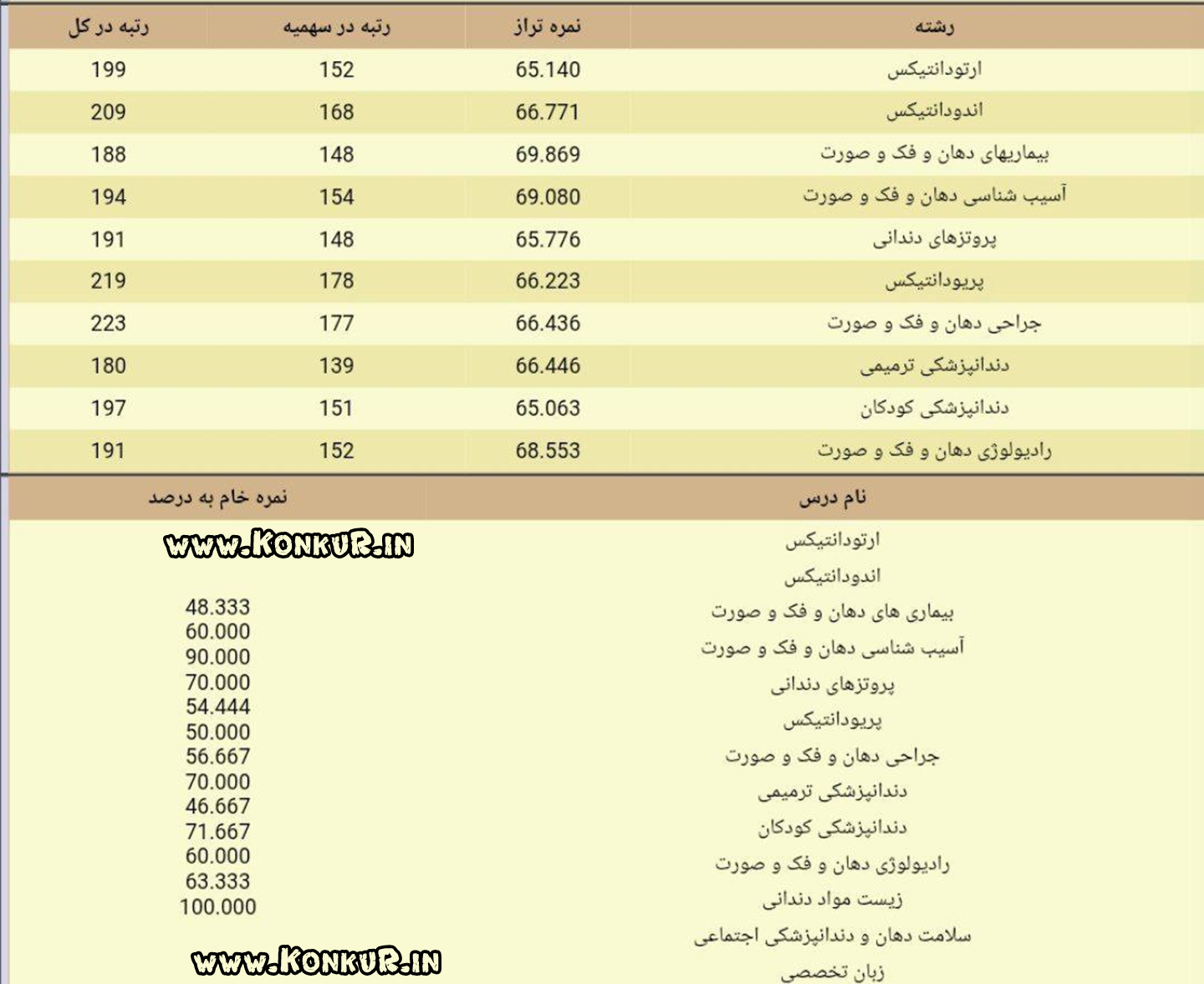 کارنامه آزمون دستیاری دندانپزشکی سال 1404 – رتبه کل 69 و نمره خام 585