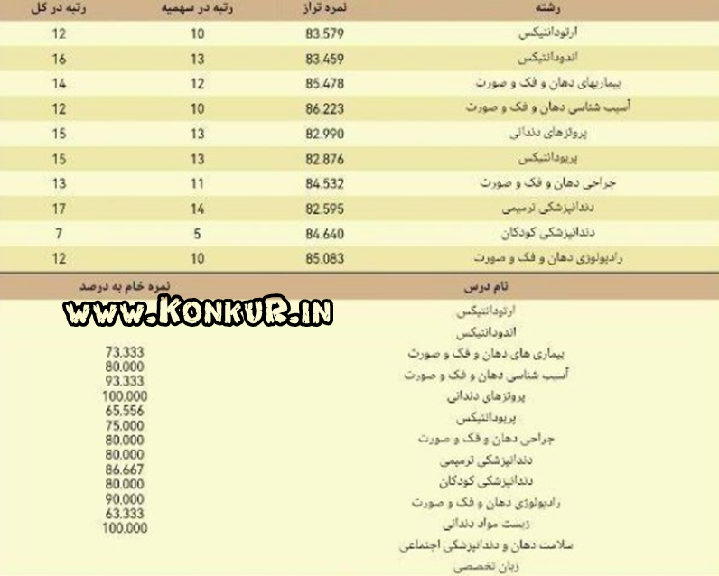 کارنامه آزمون دستیاری دندانپزشکی سال 1404 – رتبه کل 80 و نمره خام 583